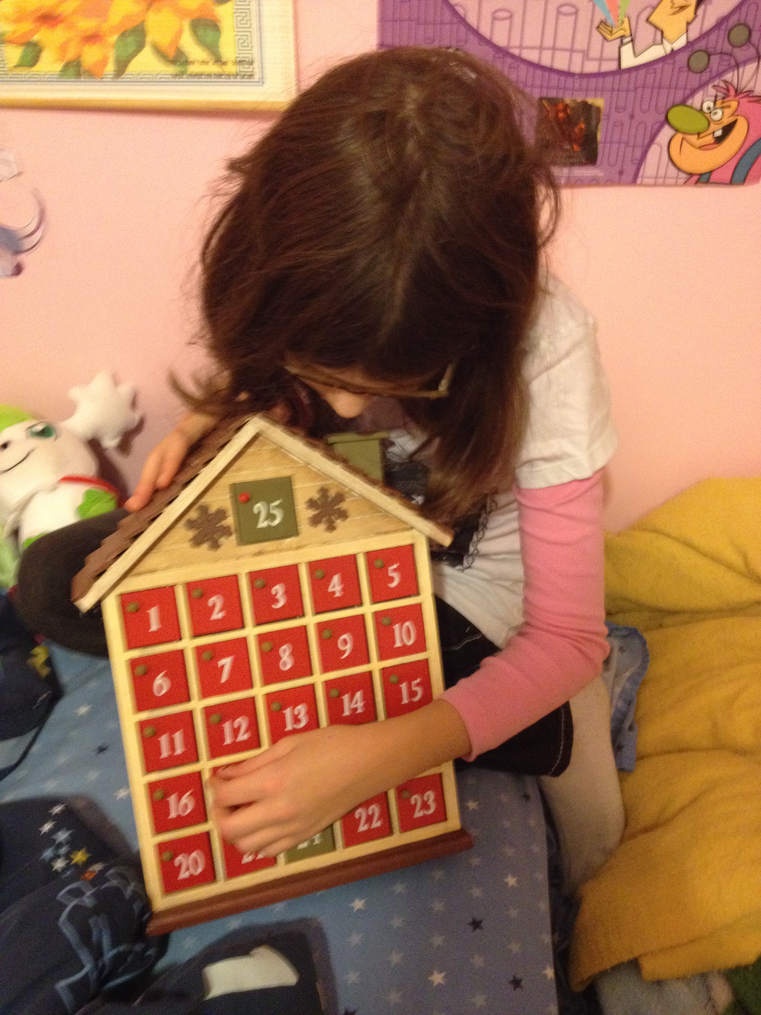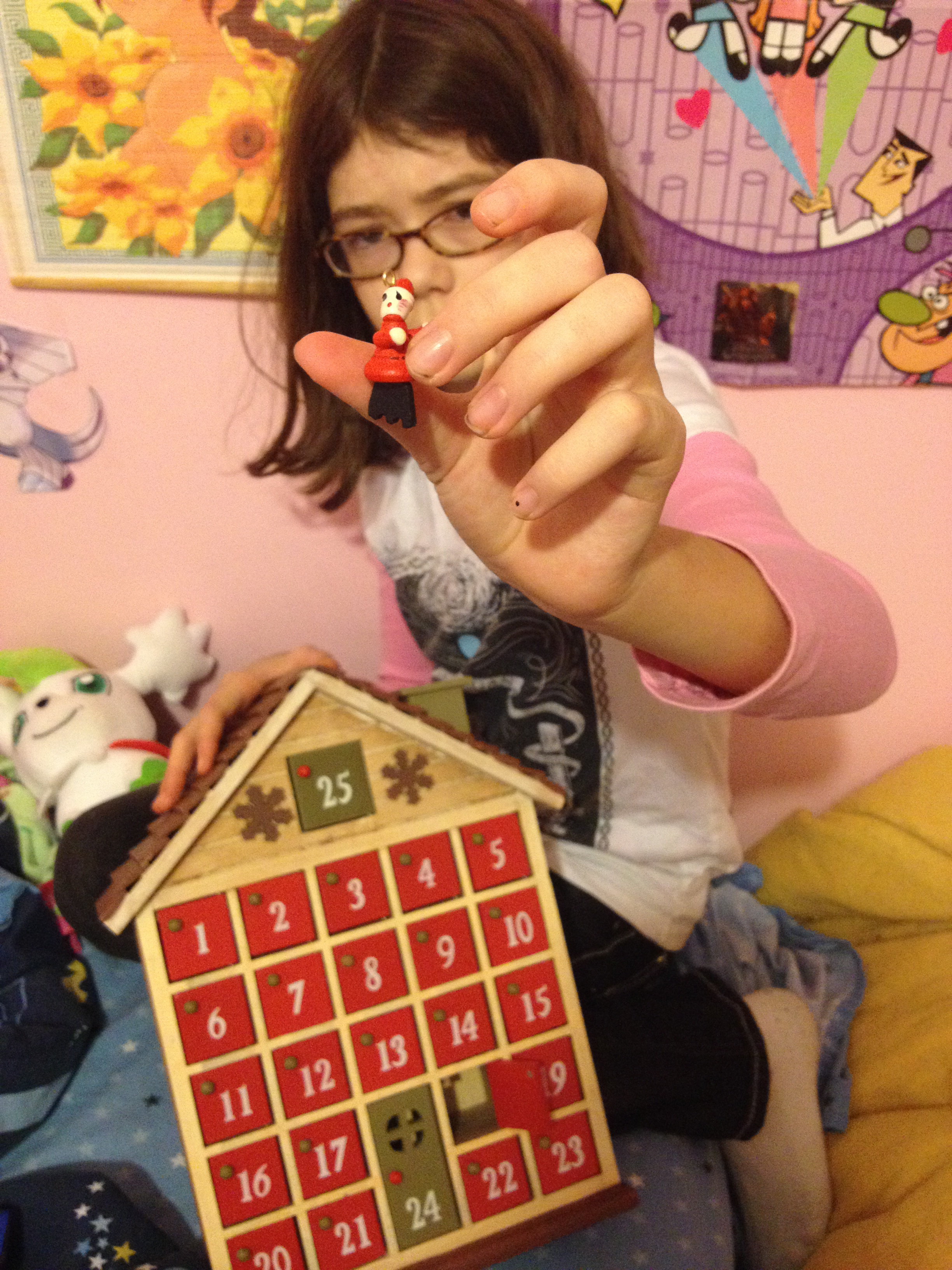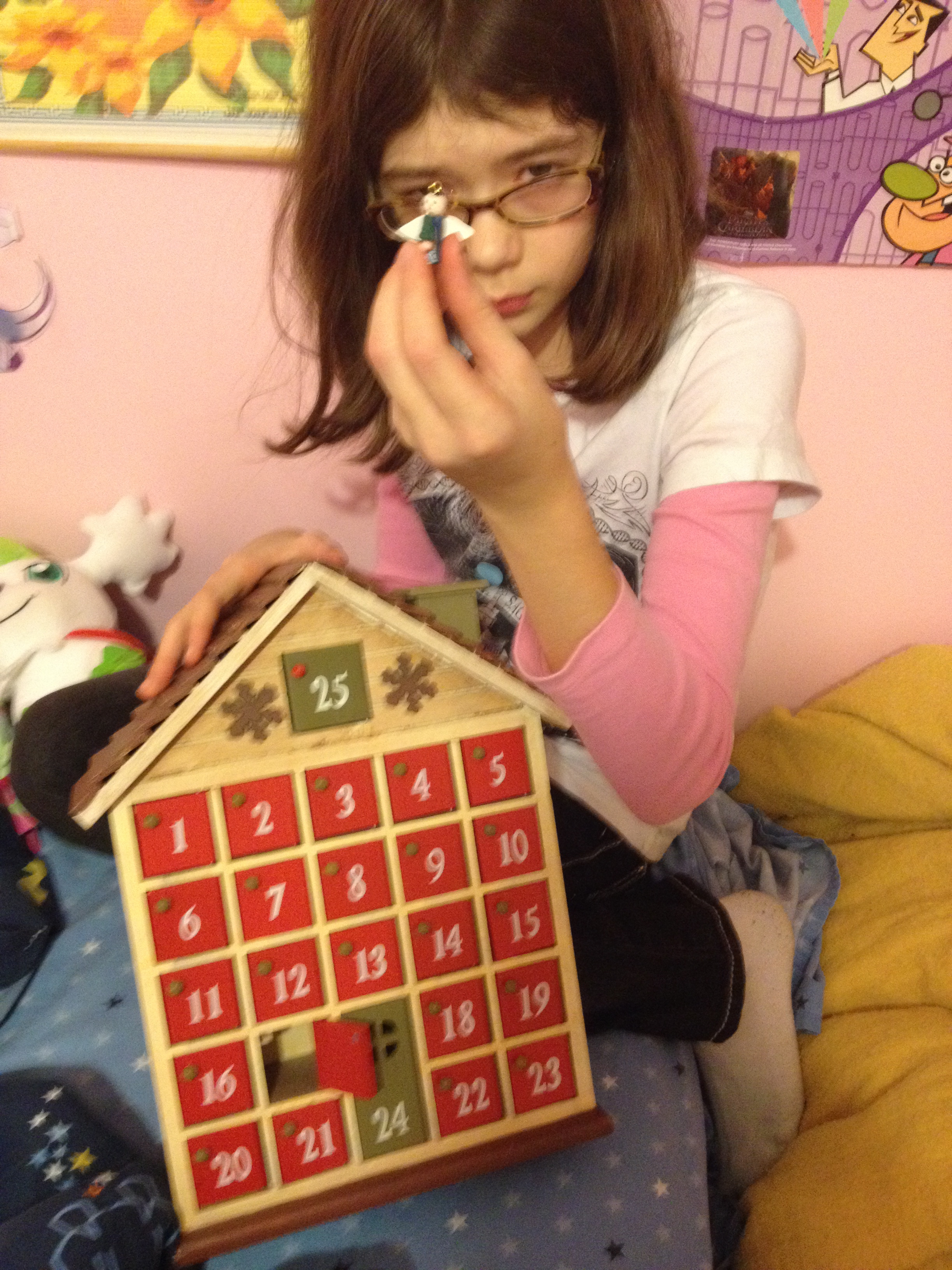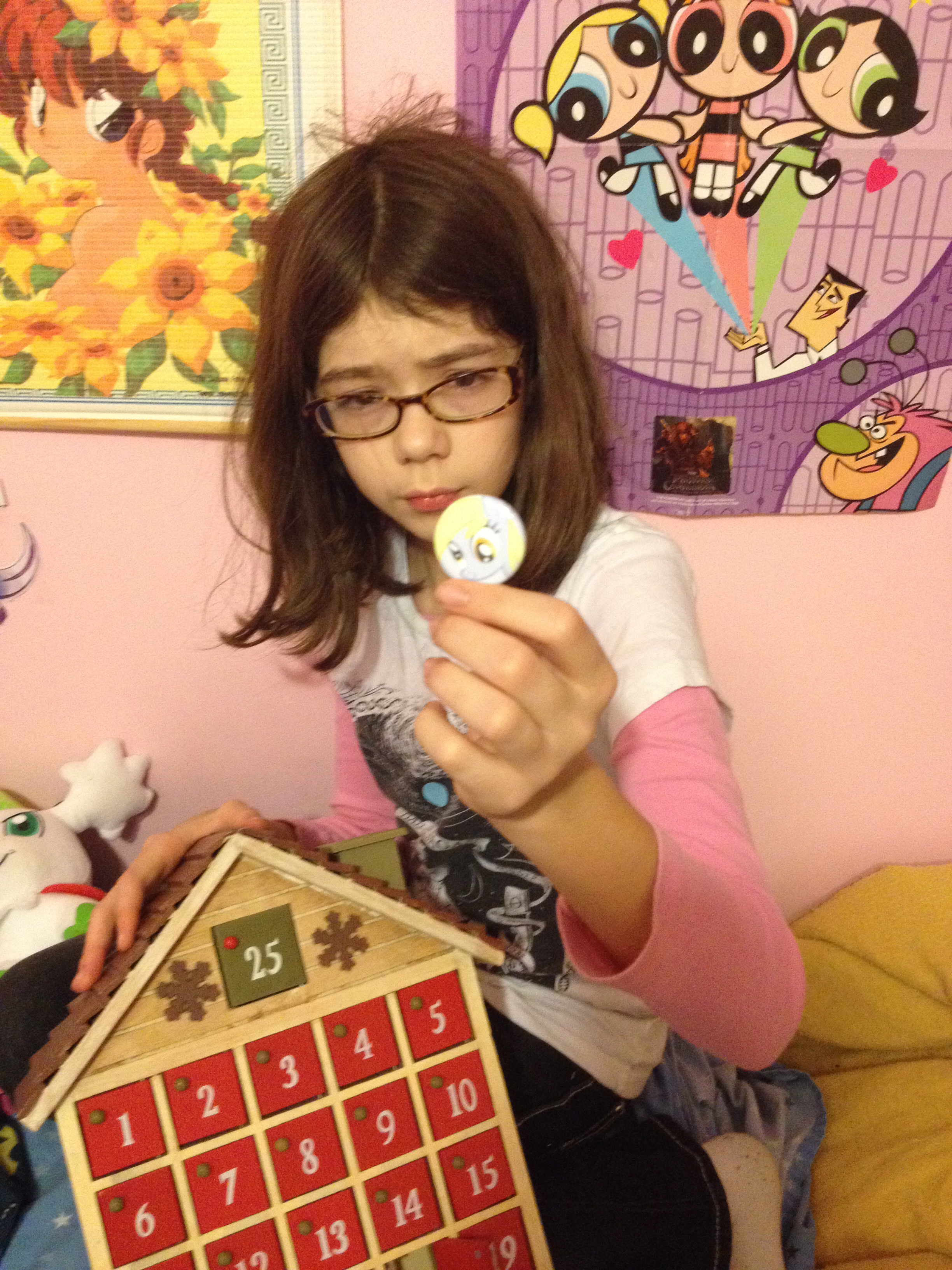 Meta Princess SCientist’s ADvent Calendar Days 17 and 18 by Mur December 18, 2013 Mur It’s late. We went to see Mythbusters. no video. But we did open the advent calendar! Mythbusters! Day 17 First An angel! Now day 18 A santa or something. It’s late. And a Derpy pin Tired Scientist is off to bed. Night everyone!