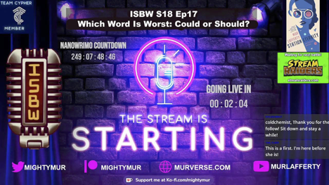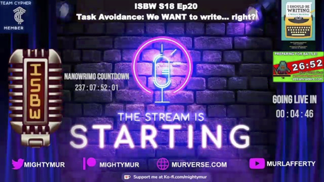 - Tuesday: 3-430 pm I Should Be Writing